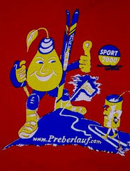 Für jeden "Preberläufer" gibt es als Dankeschön ein Preberlauf T-Shirt. Das Logo für das T-Shirt wird jedes Jahr neu gestaltet. Der Künstler darf für jeweils zwei Jahre seine Ideen auf "Stoff" bringen. Herzlichen Dank an dieser Stelle für die Kreativität.